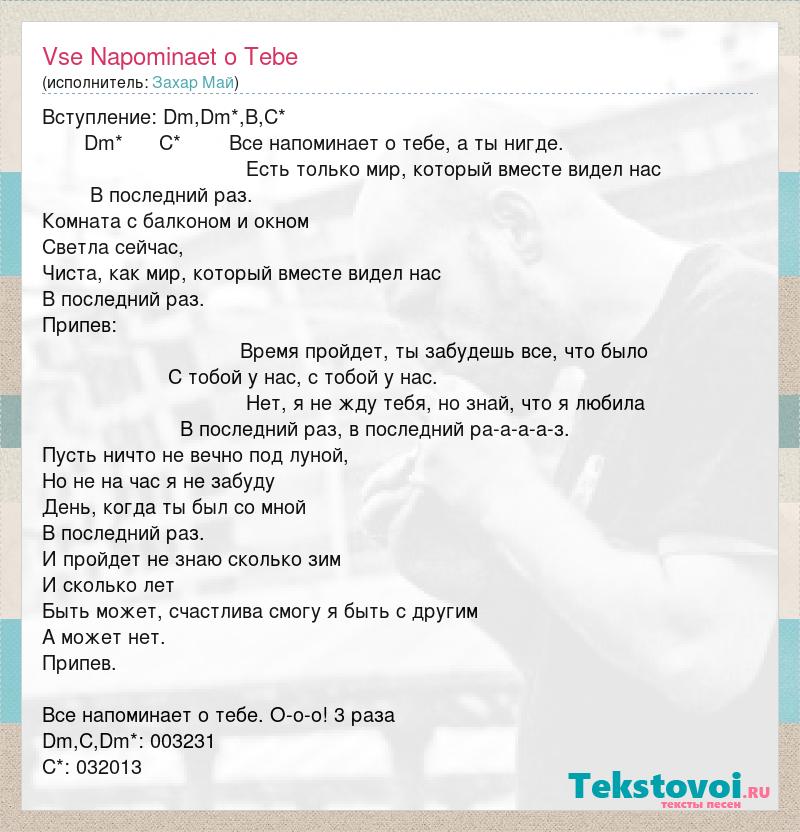 А как ты думаешь, о чем песня "Vse Napominaet o Tebe" ?