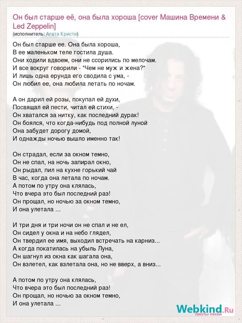 Главная→Исполнители→Агата Кристи→Он был старше её, она была хороша [cover Машина Времени & Led Zeppelin]