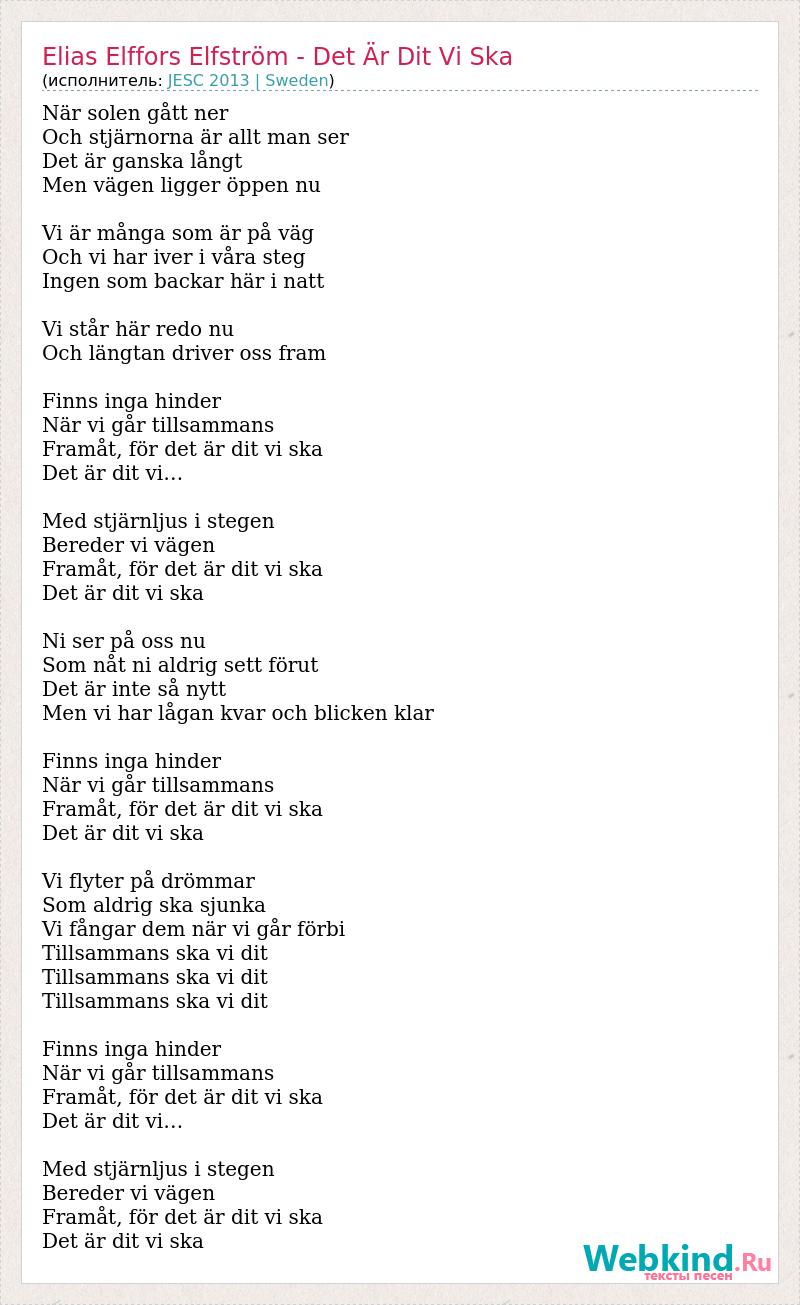А как ты думаешь, о чем песня "Elias Elffors Elfström - Det Är Dit Vi Ska" ?
