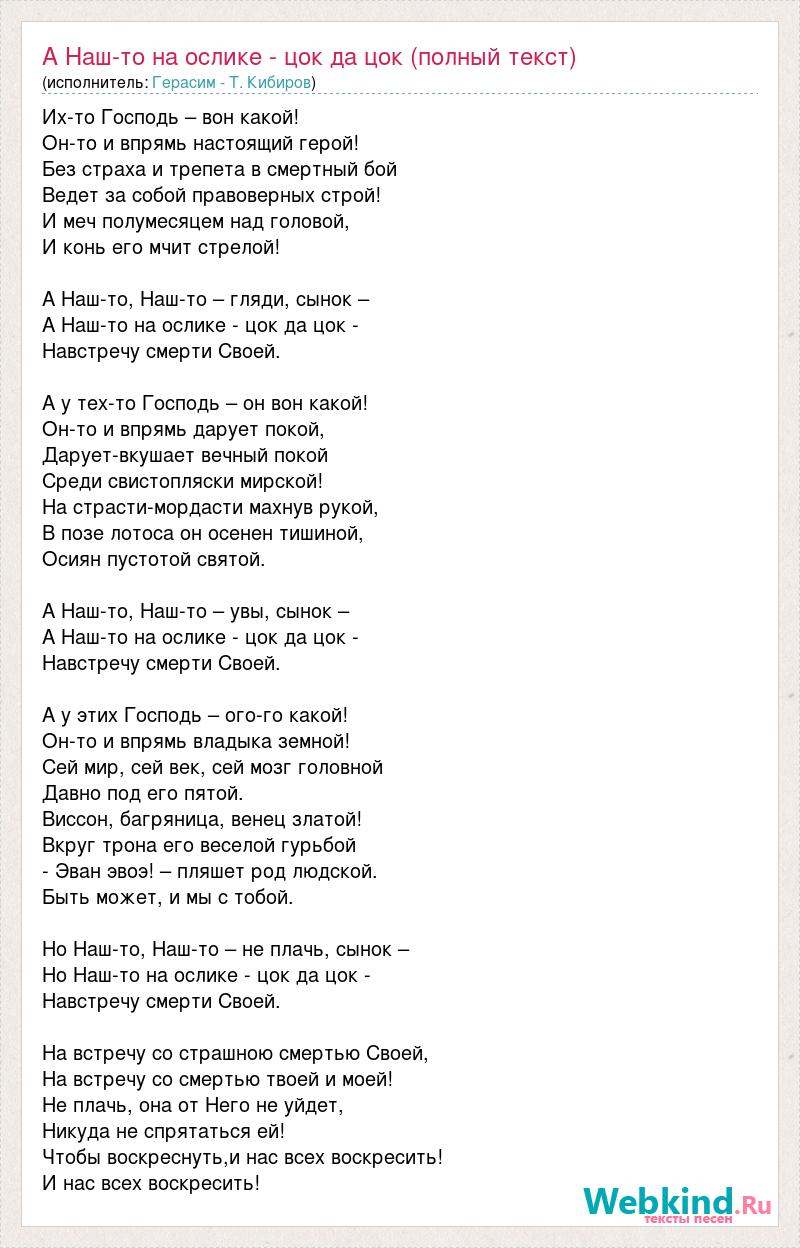 А Наш-то на ослике - цок да цок (полный текст)