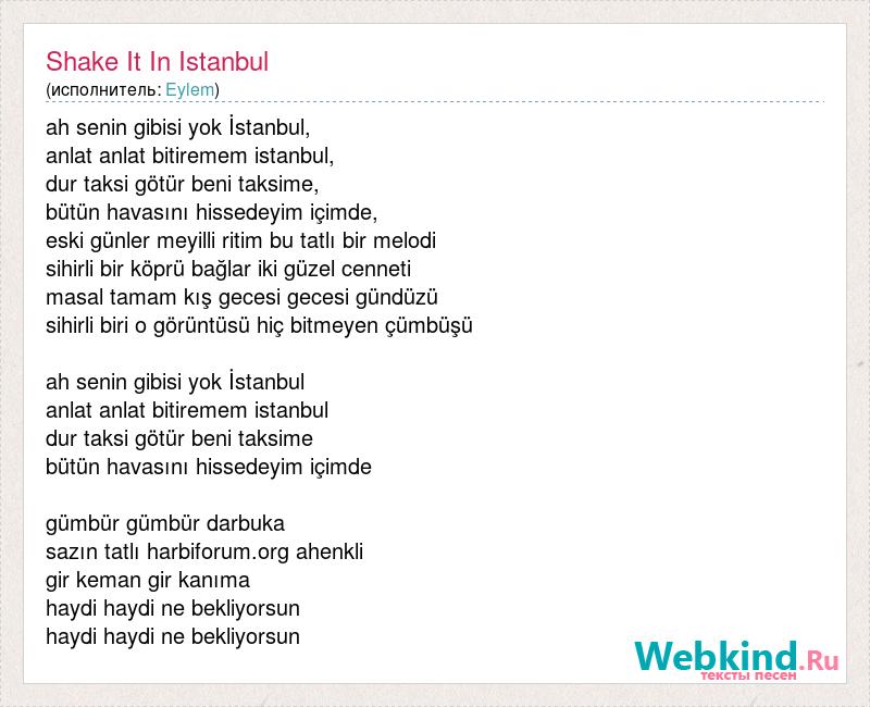 ah senin gibisi yok İstanbul, anlat anlat bitiremem istanbul, dur taksi götür beni taksime, bütün havasını hissedeyim içimde, eski günler meyilli ritim bu tatlı bir melodi sihirli bir köprü bağlar iki güzel cenneti masal tamam kış gecesi gecesi gündüzü sihirli biri o görüntüsü hiç bitmeyen çümbüşü ah senin gibisi yok İstanbul anlat anlat bitiremem istanbul dur taksi götür beni taksime bütün havasını hissedeyim içimde gümbür gümbür darbuka sazın tatlı harbiforum.org ahenkli gir keman gir kanıma haydi haydi ne bekliyorsun haydi haydi ne bekliyorsun