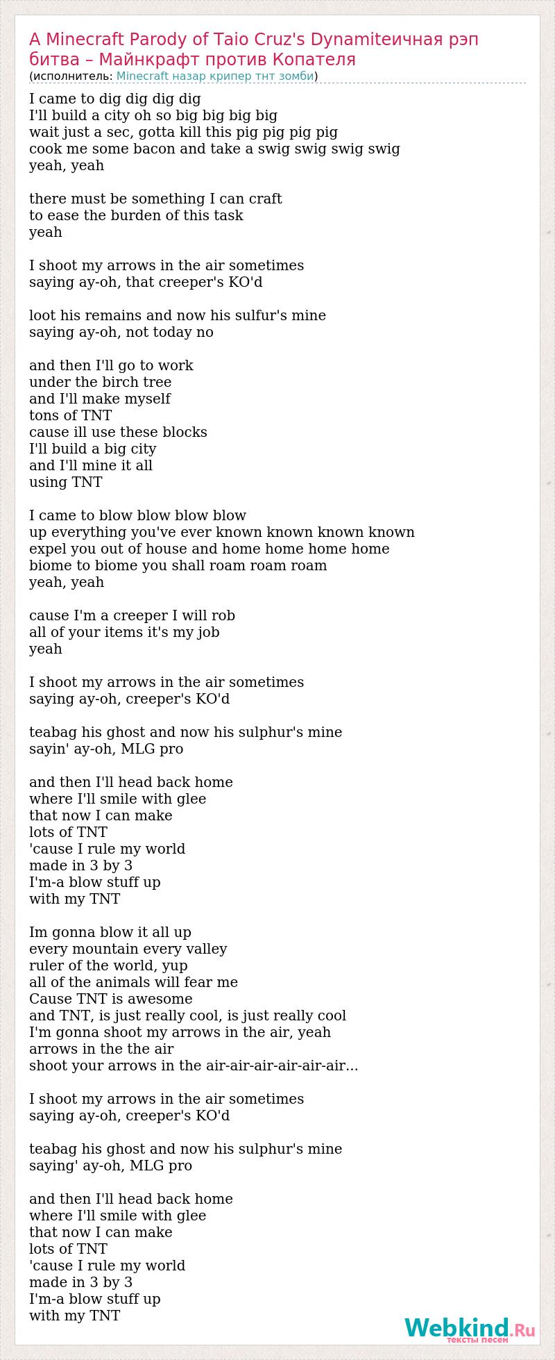 Главная→Исполнители→Minecraft назар крипер тнт зомби→A Minecraft Parody of Taio Cruz's Dynamiteичная рэп битва – Майнкрафт
