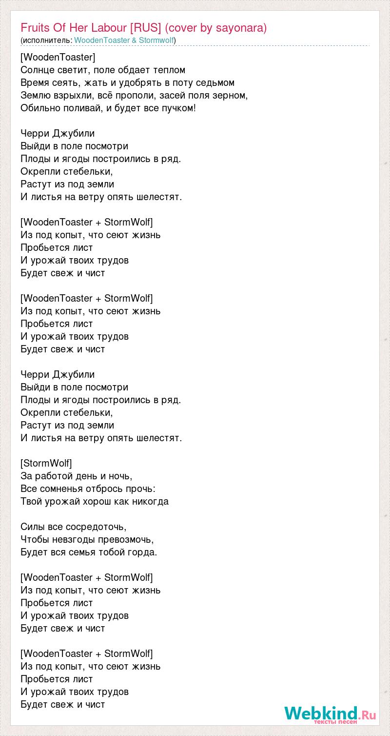 А как ты думаешь, о чем песня "Fruits Of Her Labour [RUS] (cover by sayonara)" ?