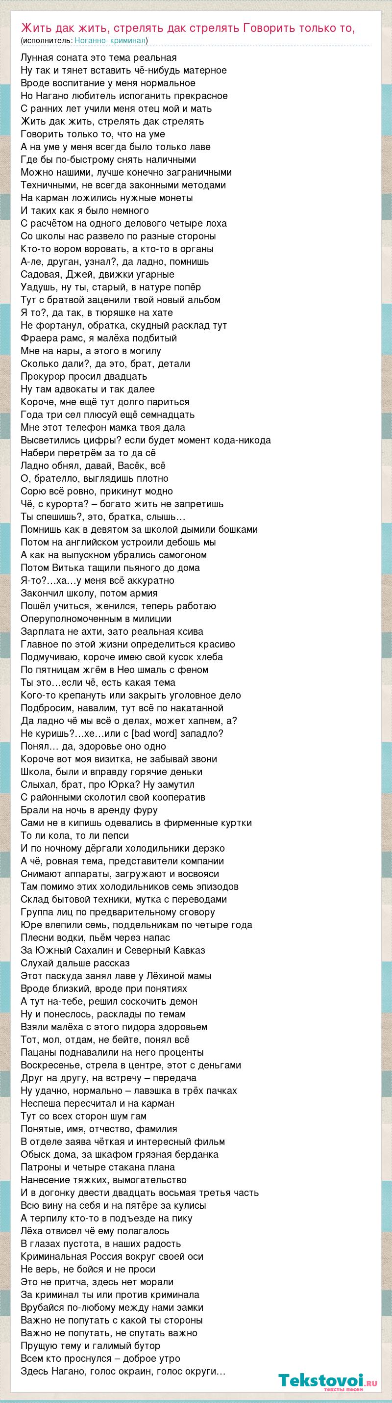 Главная→Исполнители→Ноганно- криминал→Жить дак жить, стрелять дак стрелять Говорить только то, что на уме А на уме