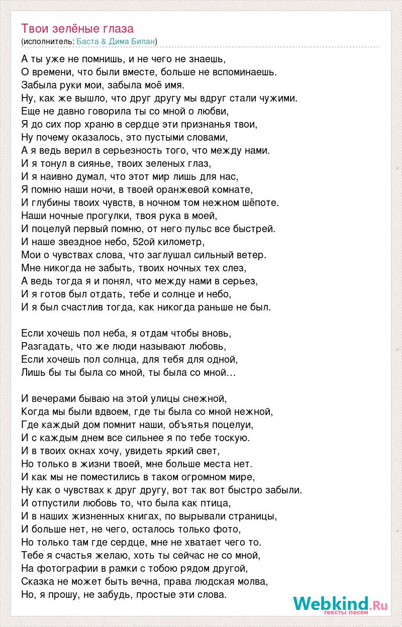 А ты уже не помнишь, и не чего не знаешь, О времени, что были вместе, больше не вспоминаешь. Забыла руки мои, забыла моё имя. Ну, как же вышло, что друг другу мы вдруг стали чужими. Еще не давно говорила ты со мной о любви, Я до сих пор храню в сердце эти признанья твои, Ну почему оказалось, это пустыми словами, А я ведь верил в серьезность того, что между нами. И я тонул в сиянье, твоих зеленых глаз, И я наивно думал, что этот мир лишь для нас, Я помню наши ночи, в твоей оранжевой комнате, И глубины твоих чувств, в ночном том нежном шёпоте. Наши ночные прогулки, твоя рука в моей, И поцелуй первый помню, от него пульс все быстрей. И наше звездное небо, 52ой километр, Мои о чувствах слова, что заглушал сильный ветер. Мне никогда не забыть, твоих ночных тех слез, А ведь тогда я и понял, что между нами в серьез, И я готов был отдать, тебе и солнце и небо, И я был счастлив тогда, как никогда раньше не был. Если хочешь пол неба, я отдам чтобы вновь, Разгадать, что же люди называют любовь, Если хочешь пол солнца, для тебя для одной, Лишь бы ты была со мной, ты была со мной… И вечерами бываю на этой улицы снежной, Когда мы были вдвоем, где ты была со мной нежной, Где каждый дом помнит наши, объятья поцелуи, И с каждым днем все сильнее я по тебе тоскую. И в твоих окнах хочу, увидеть яркий свет, Но только в жизни твоей, мне больше места нет. И как мы не поместились в таком огромном мире, Ну как о чувствах к друг другу, вот так вот быстро забыли. И отпустили любовь то, что была как птица, И в наших жизненных книгах, по вырывали страницы, И больше нет, не чего, осталось только фото, Но только там где сердце, мне не хватает чего то. Тебе я счастья желаю, хоть ты сейчас не со мной, На фотографии в рамки с тобою рядом другой, Сказка не может быть вечна, права людская молва, Но, я прошу, не забудь, простые эти слова.