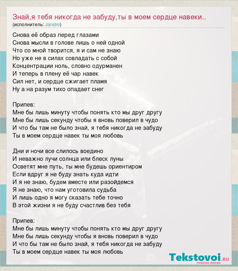 Знай,я тебя никогда не забуду,ты в моем сердце навеки..