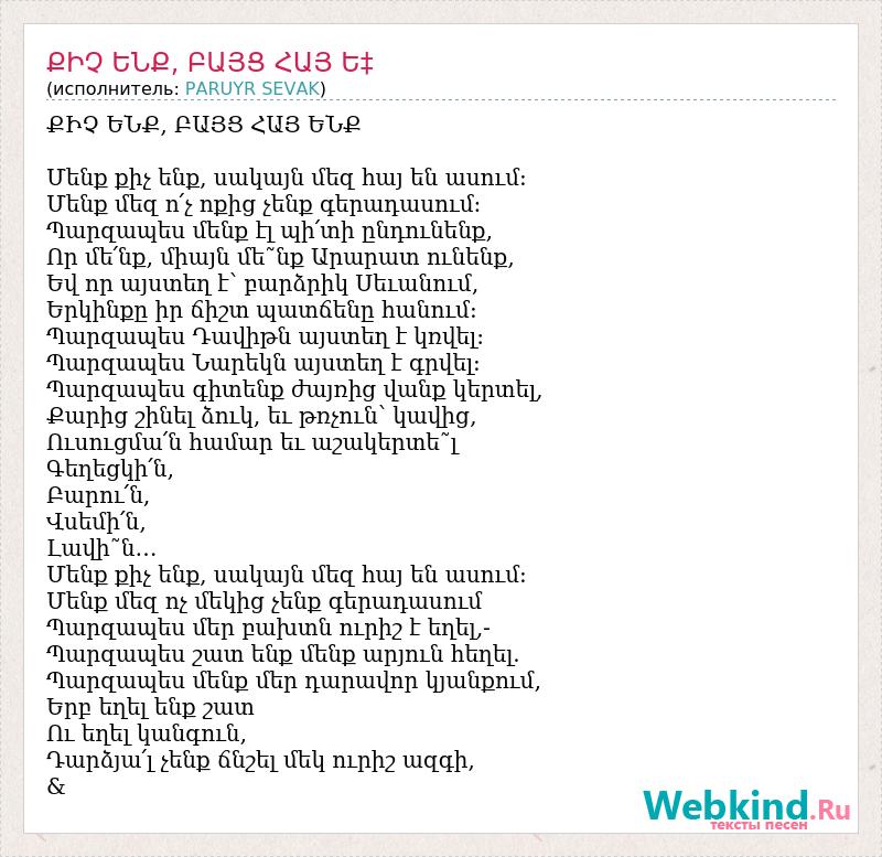 А как ты думаешь, о чем песня "ՔԻՉ ԵՆՔ‚ ԲԱՅՑ ՀԱՅ Ե" ?