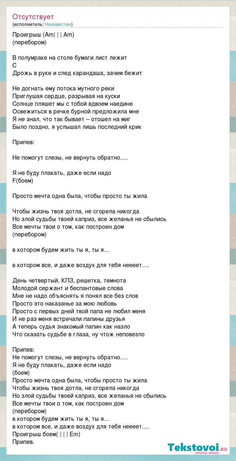 А как ты думаешь, о чем песня "Проигрыш (Am| C | F | Am)" ?