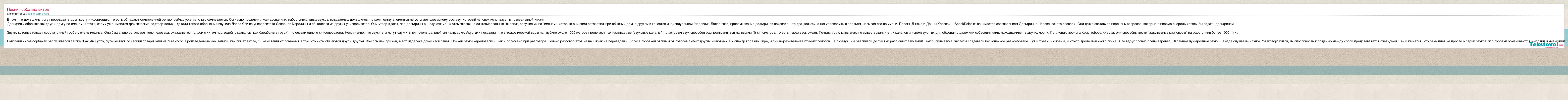В том, что дельфины могут передавать друг другу информацию, то есть обладают осмысленной речью, сейчас уже мало кто сомневается. Согласно последним исследованиям, набор уникальных звуков, издаваемых дельфинов, по количеству элементов не уступает словарному составу, который человек использует в повседневной жизни. Дельфины обращаются друг к другу по именам. Кстати, этому уже имеются фактические подтвержения - детали такого обращения изучила Лаела Сэй из университета Северной Каролины и её коллеги из других университетов. Они утверждают, что дельфины в 9 случаях из 14 отзываются на синтезированные “оклики”, зовущие их по “именам”, которые они сами оставляют при общении друг с другом в качестве индивидуальной “подписи”. Более того, прослушивание дельфинов показало, что два дельфина могут говорить о третьем, называя его по имени. Проект Джека и Донны Кассевиц "SpeakDolphin" занимается составлением Дельфинье-Человеческого словаря. Они даже составили перечень вопросов, которые в первую очередь хотели бы задать дельфинам. Звуки, которые издает сорокатонный горбач, очень мощные. Они буквально сотрясают тело человека, оказавшегося рядом с китом под водой, отдаваясь “как барабаны в груди”, по словам одного кинооператора. Несомненно, что звуки эти могут служить для очень дальней сигнализации. Акустики показали, что в толще морской воды на глубине около 1000 метров пролегают так называемые “звуковые каналы”, по которым звук способен распространяться на тысячи (!) километров, то есть через весь океан. По-видимому, киты знают о существовании этих каналов и используют их для общения с далекими собеседниками, находящимися в других морях. По мнению зоолога Кристофора Кларка, они способны вести “задушевные разговоры” на расстоянии более 1000 (!) км. Голосами китов-горбачей заслушивался также Жак Ив Кусто, путешествуя со своими товарищами на “Калипсо”. Произведенные ими записи, как пишет Кусто, “…не оставляют сомнения в том, что киты общаются друг с другом. Вон слышен призыв, а вот издалека доносится ответ. Причем звуки чередовались, как и положено при разговоре. Только разговор этот на наш язык не переведешь. Голоса горбачей отличны от голосов любых других животных. Их спектр гораздо шире, и они выразительнее птичьих голосов… Пожалуй, мы различали до тысячи различных звучаний! Тембр, сила звука, частоты создавали бесконечное разнообразие. Тут и трели, и сирены, и что-то вроде мышиного писка. А то вдруг словно олень заревел. Странные чужеродные звуки… Когда слушаешь ночной “разговор” китов, их способность к общению между собой представляется очевидной. Так и кажется, что речь идет не просто о серии звуков, что горбачи обмениваются мыслями и мнениями!..”