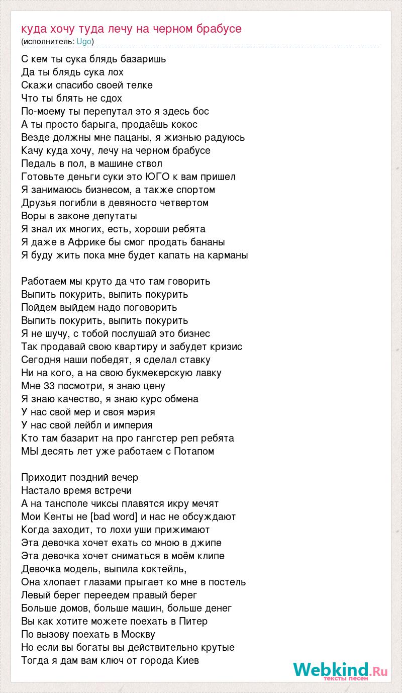 А как ты думаешь, о чем песня "Куда хочу туда лечу на черном брабусе" ?