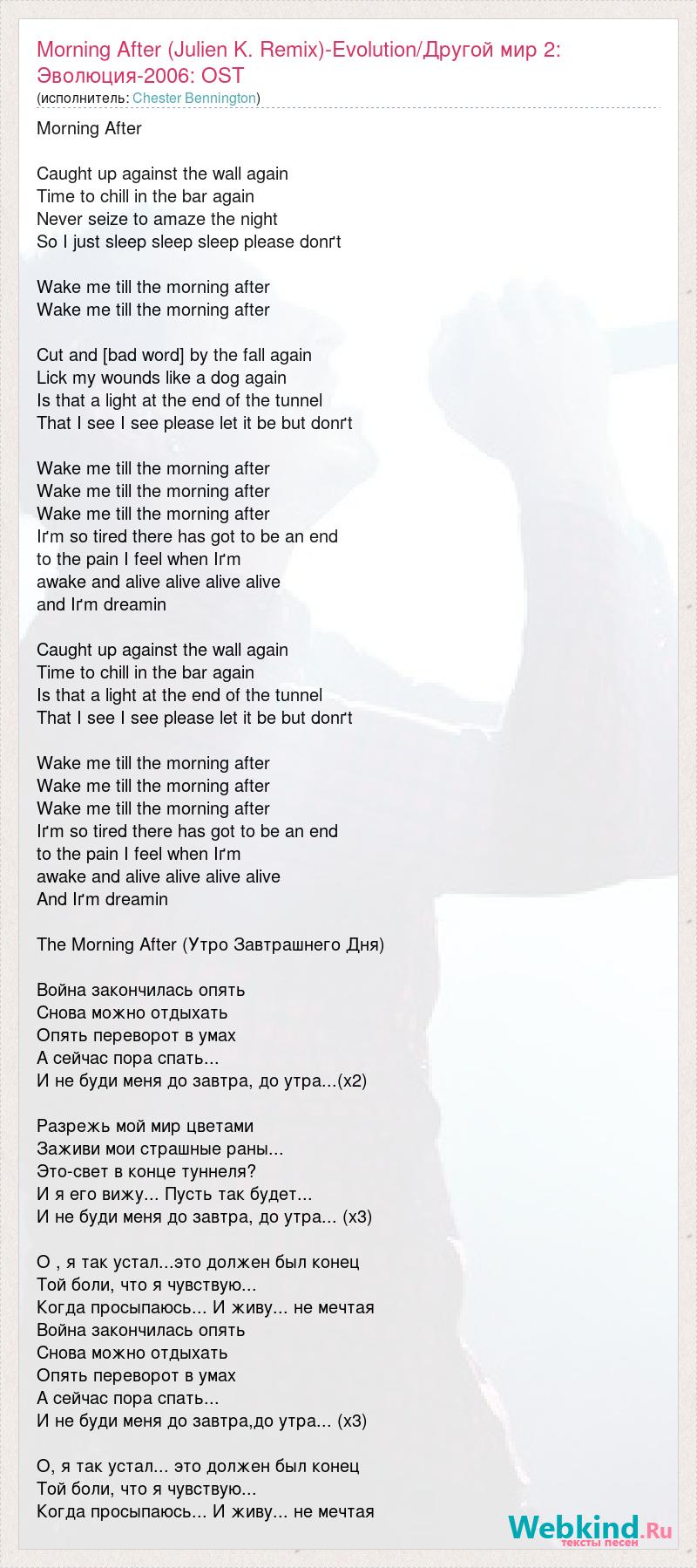 Главная→Исполнители→Chester Bennington→Morning After (Julien K. Remix)-Evolution/Другой мир 2: Эволюция-2006: OST