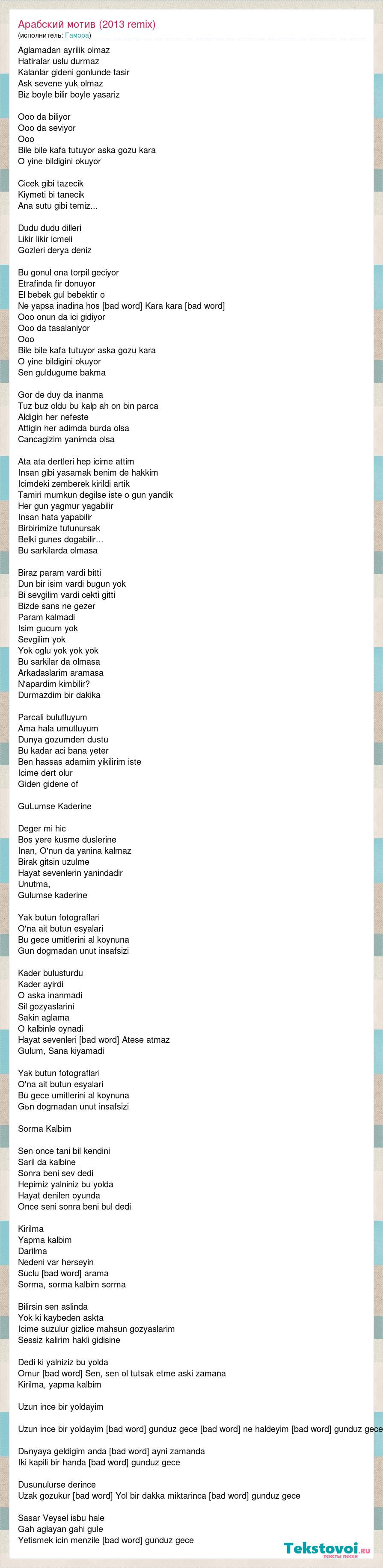 А как ты думаешь, о чем песня "Арабский мотив (2013 remix)" ?