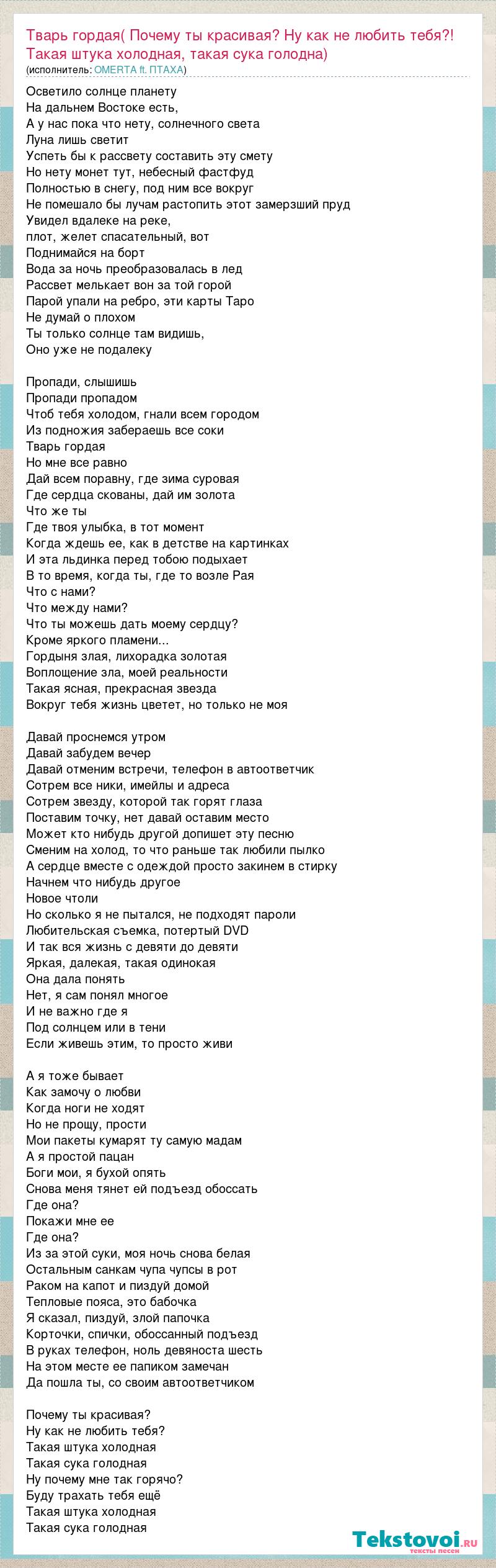 Главная→Исполнители→OMERTA ft. ПТАХА→Тварь гордая( Почему ты красивая? Ну как не любить тебя?! Такая штука хо