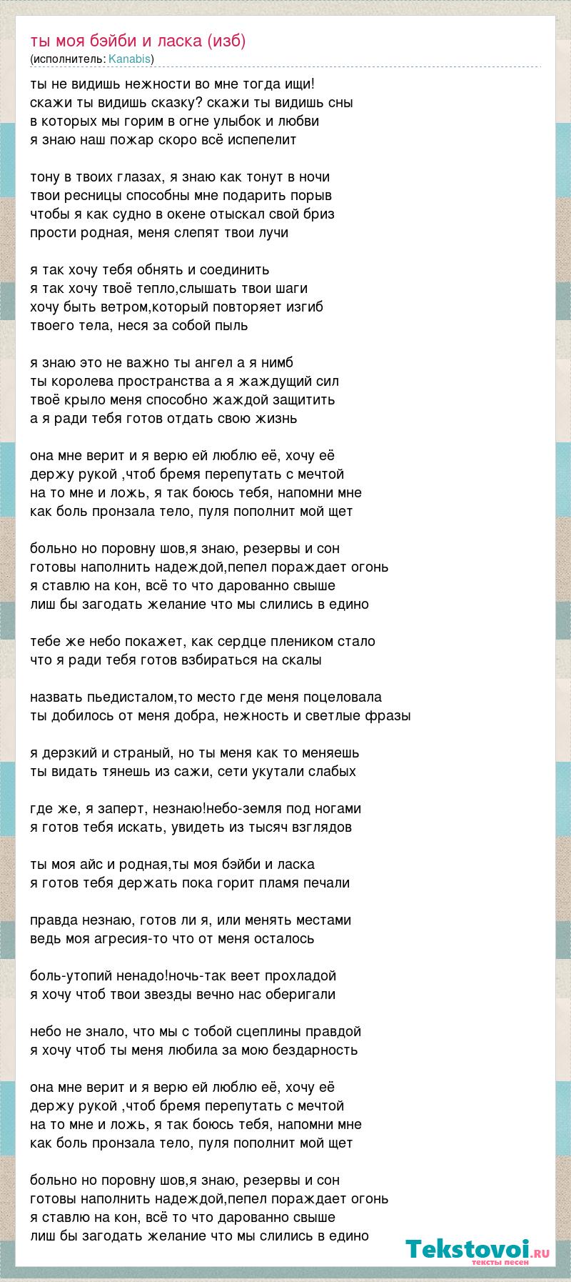 А как ты думаешь, о чем песня "Ты моя бэйби и ласка (изб)" ?
