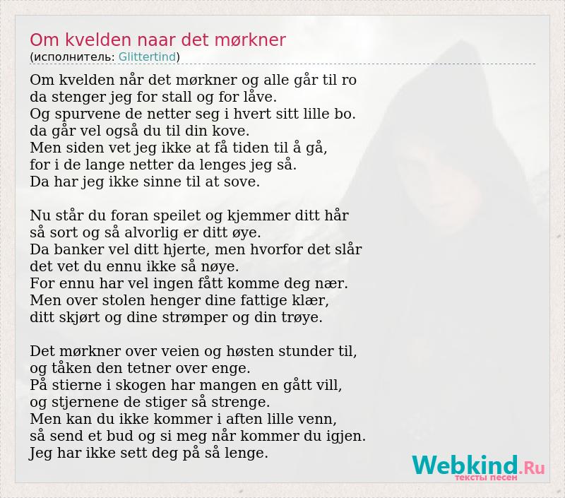 А как ты думаешь, о чем песня "Om kvelden naar det mørkner" ?