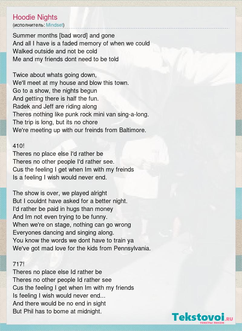 А как ты думаешь, о чем песня "Hoodie Nights" ?