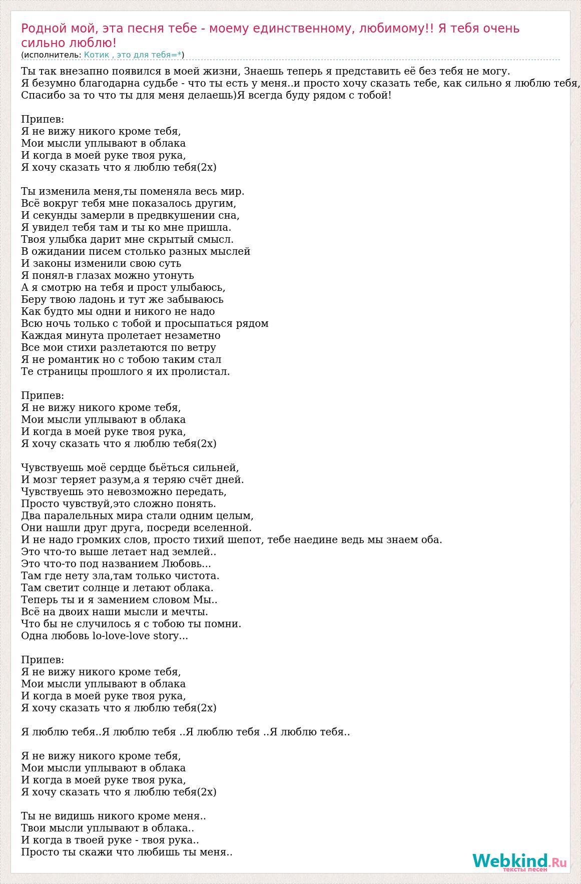 Главная→Исполнители→Котик , это для тебя=*→Родной мой, эта песня тебе - моему единственному, любимому!! Я тебя очень сильно