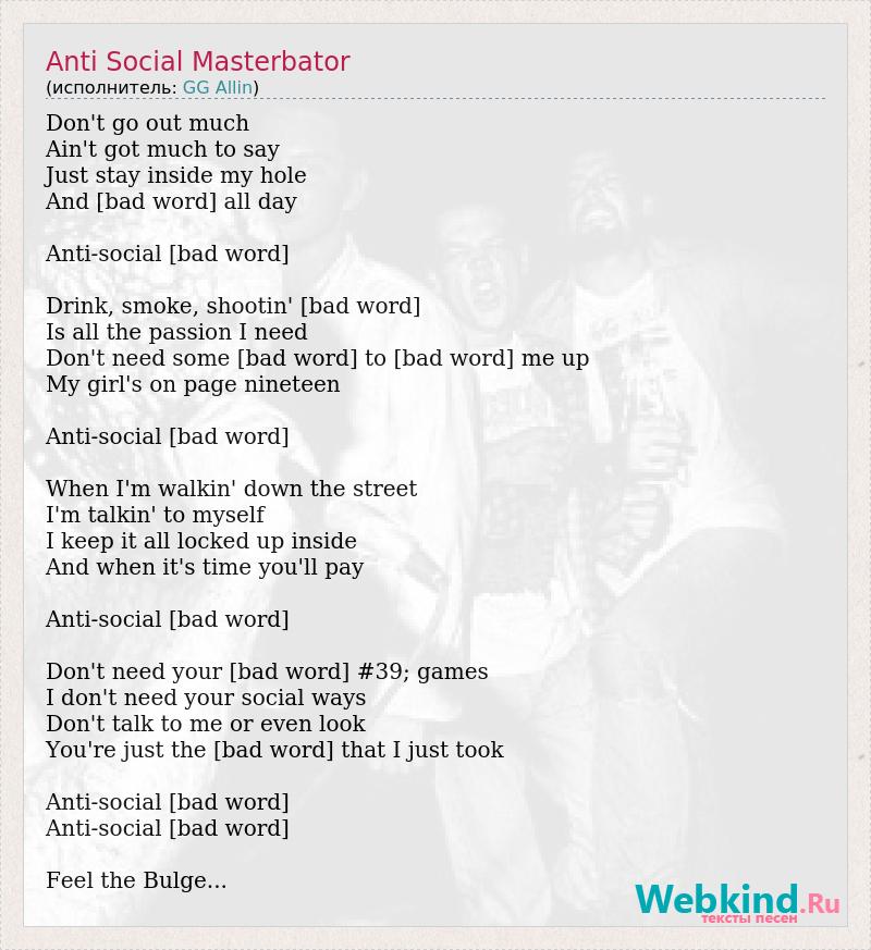 А как ты думаешь, о чем песня "Anti Social Masterbator" ?
