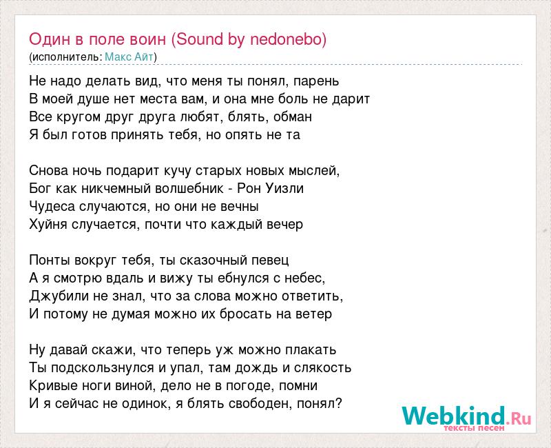 А как ты думаешь, о чем песня "Один в поле воин (Sound by nedonebo)" ?
