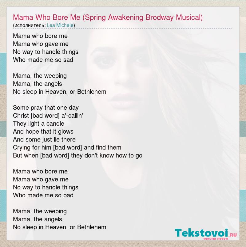 А как ты думаешь, о чем песня "Mama Who Bore Me (Spring Awakening Brodway Musical)" ?