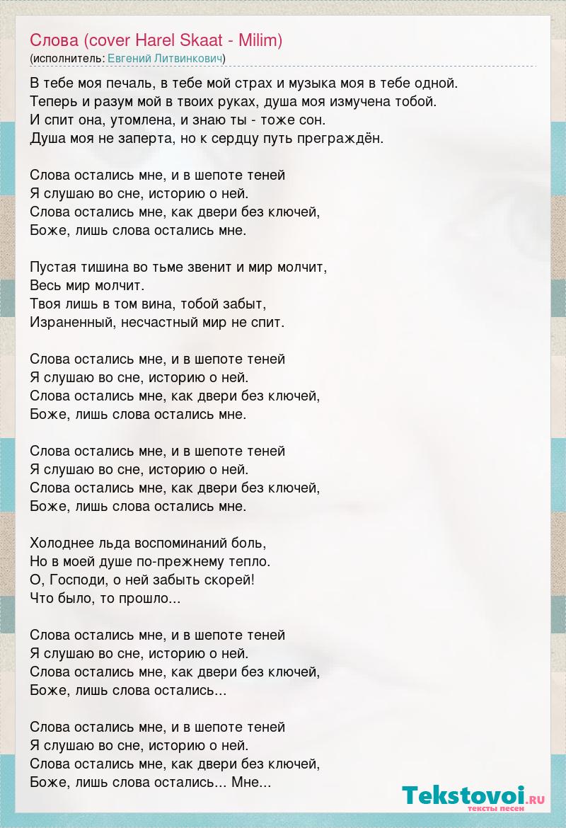 А как ты думаешь, о чем песня "Слова (cover Harel Skaat - Milim)" ?