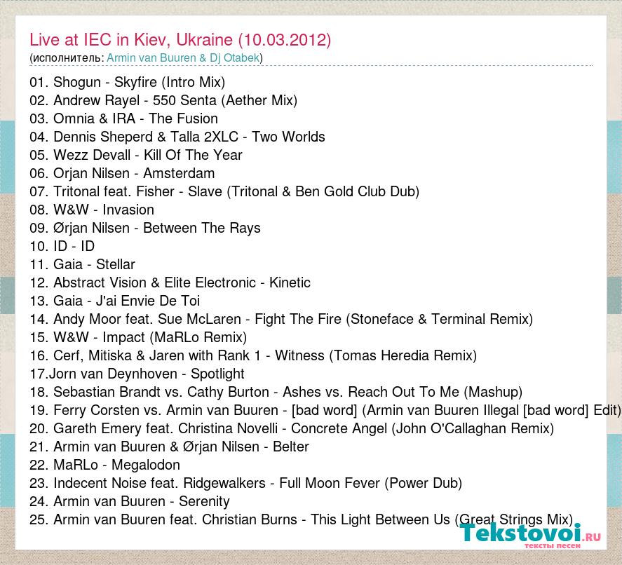 А как ты думаешь, о чем песня "Live at IEC in Kiev, Ukraine (10.03.2012)" ?