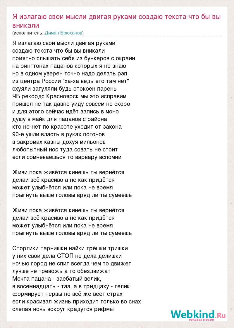 Главная→Исполнители→Диман Брюханов→Я излагаю свои мысли двигая руками создаю текста что бы вы вникали