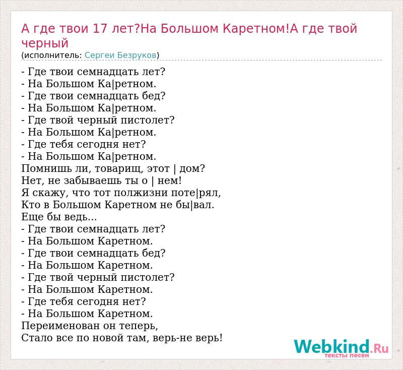 А где твои 17 лет?На Большом Каретном!А где твой черный