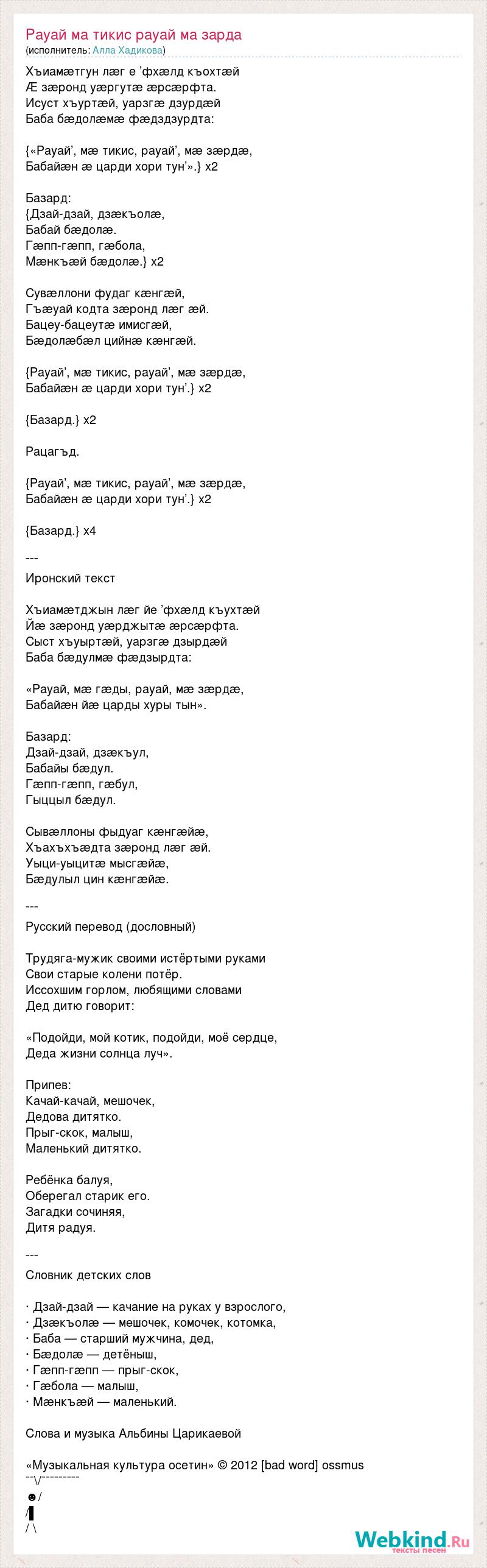 {Рауай’, мæ тикис, рауай’, мæ зæрдæ,