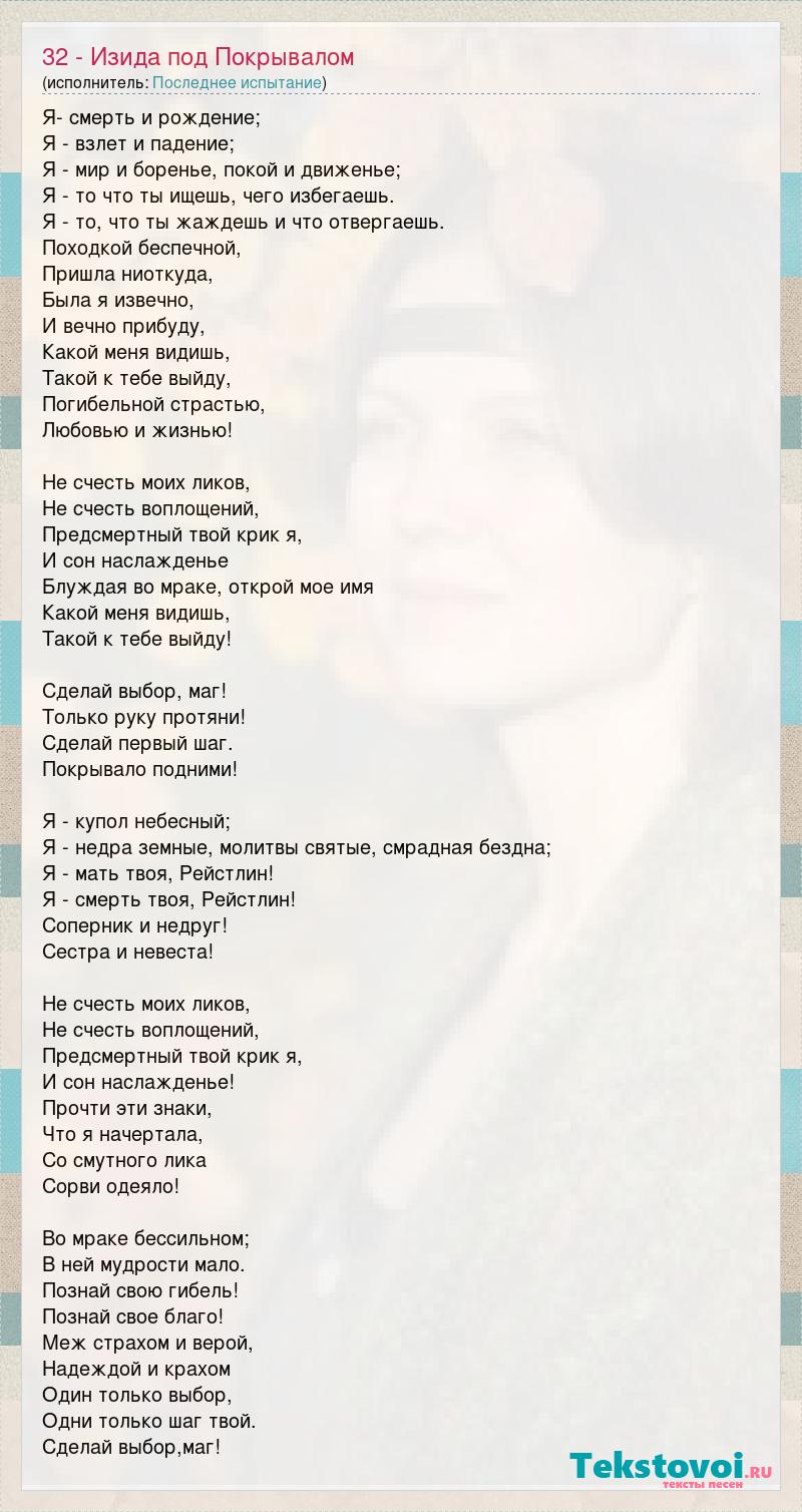 А как ты думаешь, о чем песня "32 - Изида под Покрывалом" ?