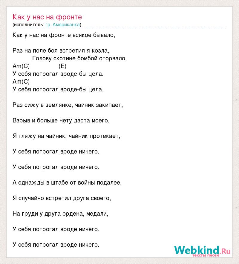 А как ты думаешь, о чем песня "Как у нас на фронте" ?