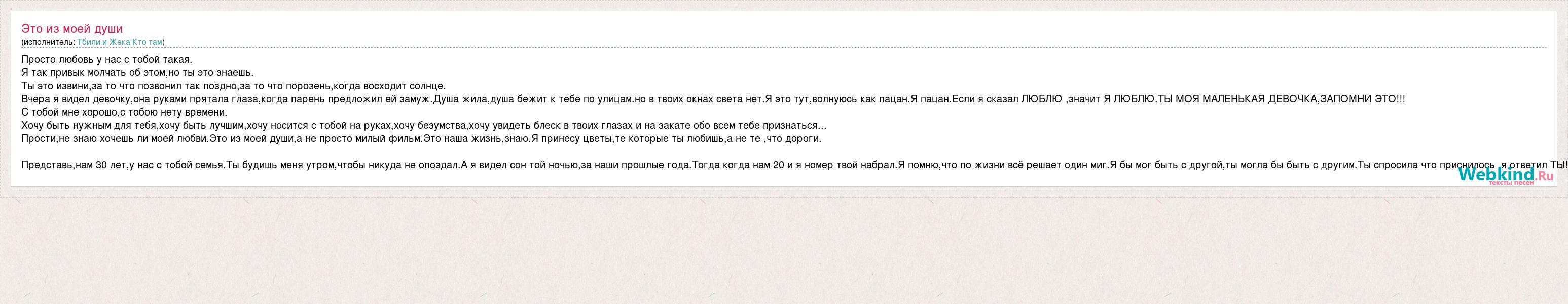 А как ты думаешь, о чем песня "Это из моей души" ?