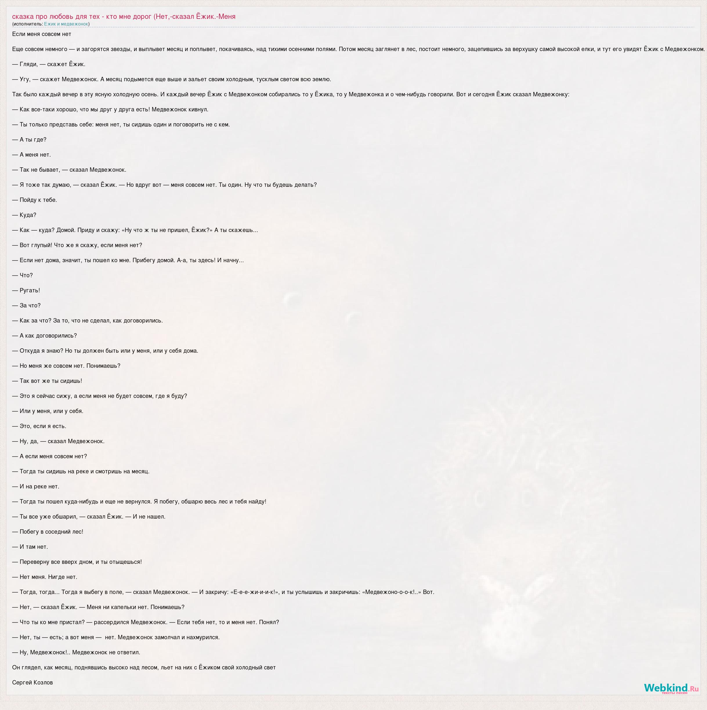 Главная→Исполнители→Ёжик И Медвежонок→Сказка про любовь для тех - кто мне дорог (Нет,-сказал Ёжик.-Меня ни капе