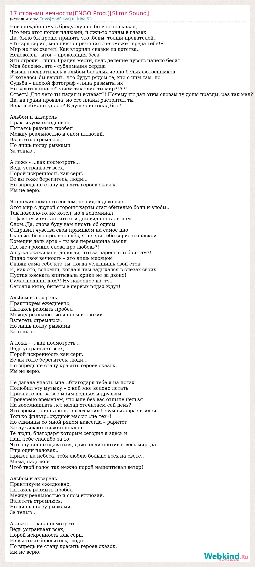 А как ты думаешь, о чем песня "17 страниц вечности(ENGO Prod.)[Slimz Sound]" ?
