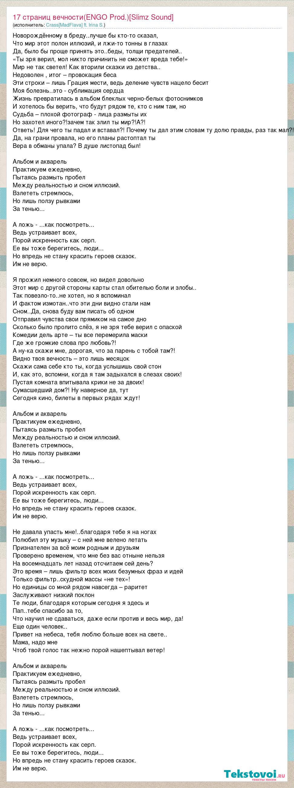 А как ты думаешь, о чем песня "17 страниц вечности(ENGO Prod.)[Slimz Sound]" ?