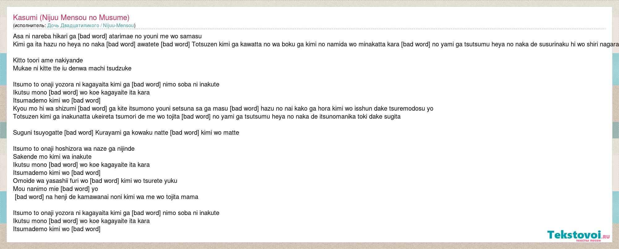 А как ты думаешь, о чем песня "Kasumi (Nijuu Mensou no Musume)" ?