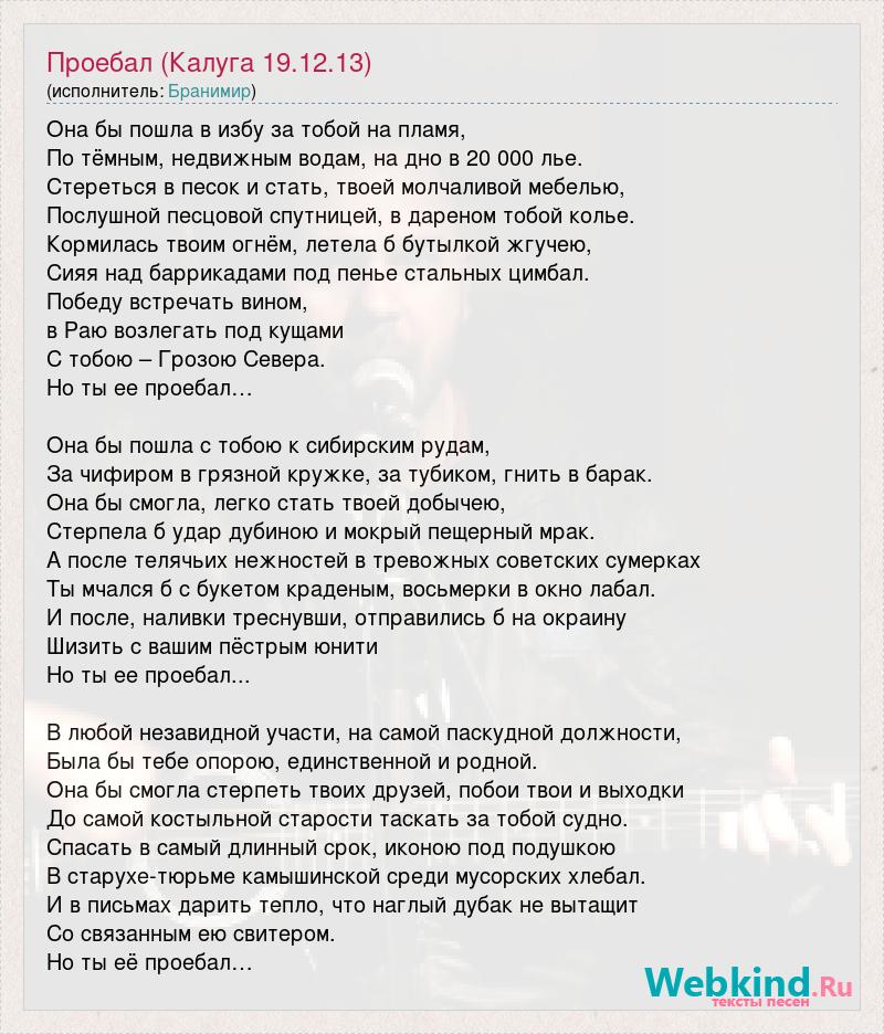 А как ты думаешь, о чем песня "Проебал (Калуга 19.12.13)" ?