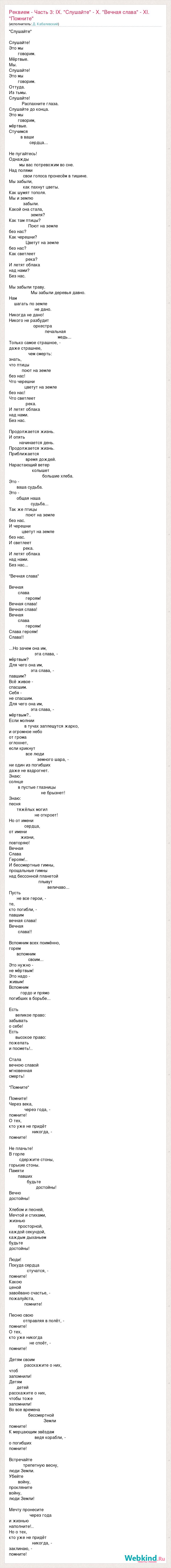 А как ты думаешь, о чем песня "Реквием - Часть 3: IX. "Слушайте" - X. "Вечная слава" - XI. "Помните"" ?