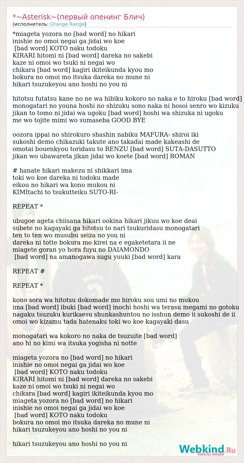 А как ты думаешь, о чем песня "*~Asterisk~(первый опенинг Блич)" ?