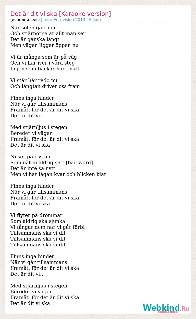 А как ты думаешь, о чем песня "Det är dit vi ska [Karaoke version]" ?