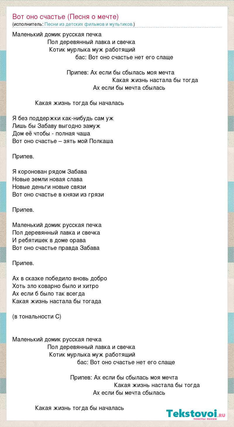 Главная→Исполнители→Песни из детских фильмов и мультиков. Летучий корабль→Вот оно счастье (Песня о мечте)