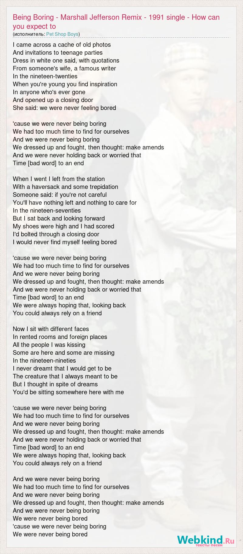 А как ты думаешь, о чем песня "Being Boring - Marshall Jefferson Remix - 1991 single - How can you expect" ?