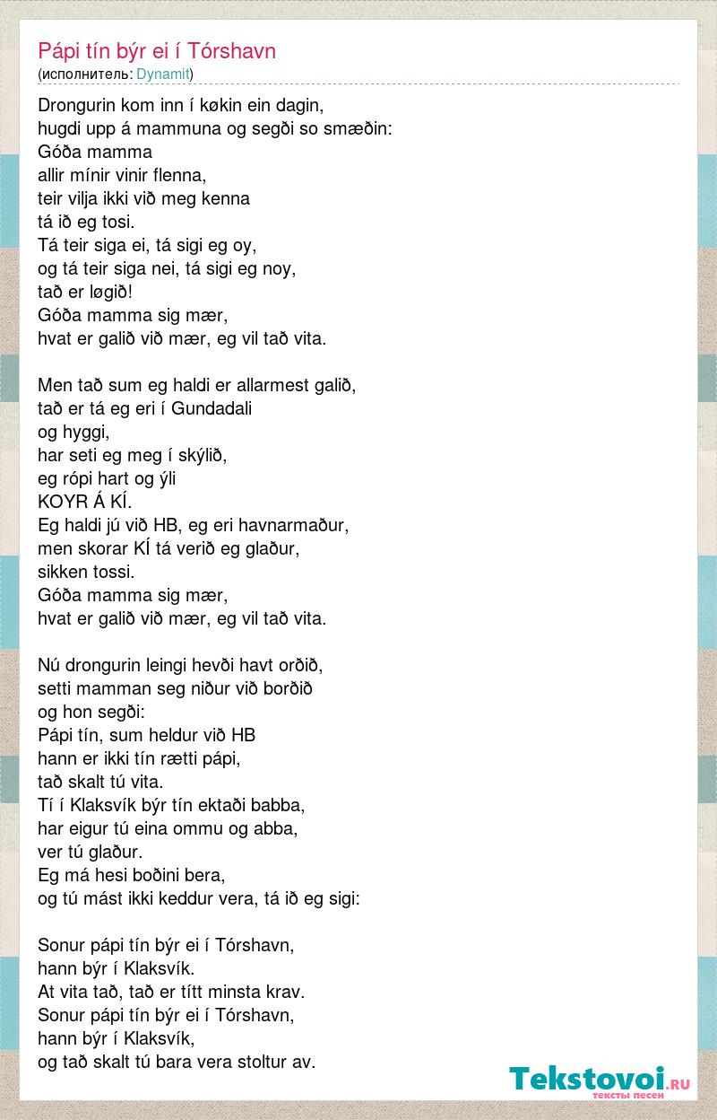 А как ты думаешь, о чем песня "Pápi tín býr ei í Tórshavn" ?