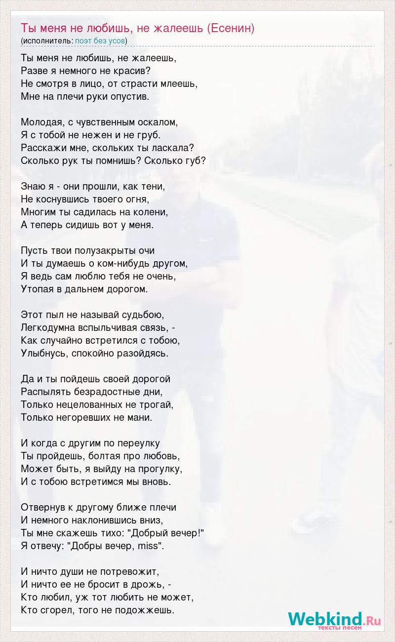 А как ты думаешь, о чем песня "Ты меня не любишь, не жалеешь (Есенин)" ?