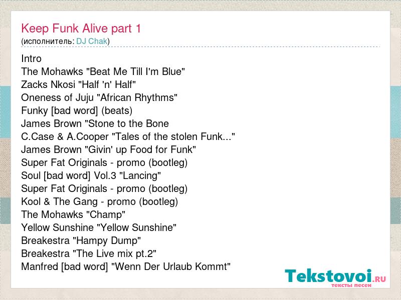 А как ты думаешь, о чем песня "Keep Funk Alive part 1" ?