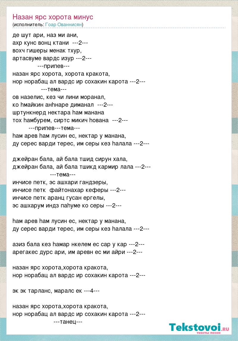 А как ты думаешь, о чем песня "Назан ярс хорота минус" ?