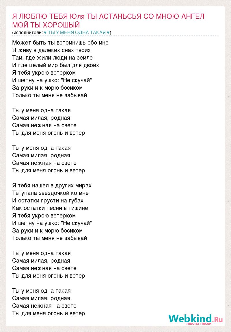 Главная→Исполнители→♥ ТЫ У МЕНЯ ОДНА ТАКАЯ ♥→Я ЛЮБЛЮ ТЕБЯ Юля ТЫ АСТАНЬСЬЯ СО МНОЮ АНГЕЛ МОЙ ТЫ ХОРОШЫЙ