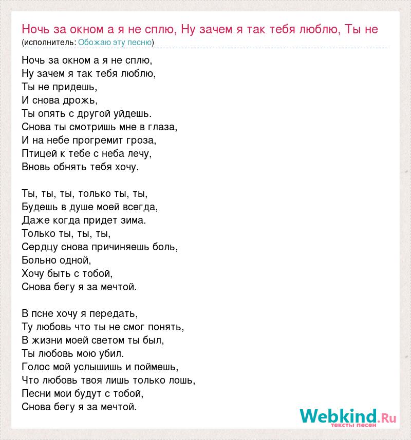 Ночь за окном а я не сплю, Ну зачем я так тебя люблю, Ты не
