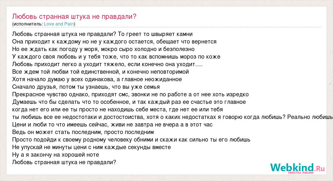 А как ты думаешь, о чем песня "Любовь странная штука не правдали?" ?