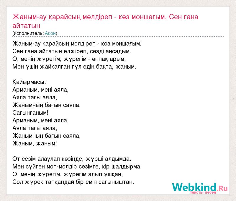 Главная→Исполнители→Акон→Жаным-ау қарайсың мөлдіреп - көз моншағым. Сен ғана айтатын елжіреп, сөзді а